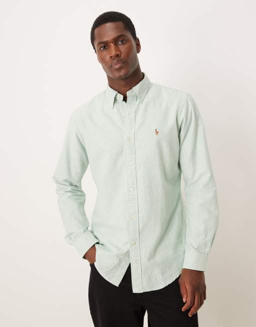 Polo Ralph Lauren – Grön- och vitrandig oxfordskjorta med figursydd passform och klassisk logga