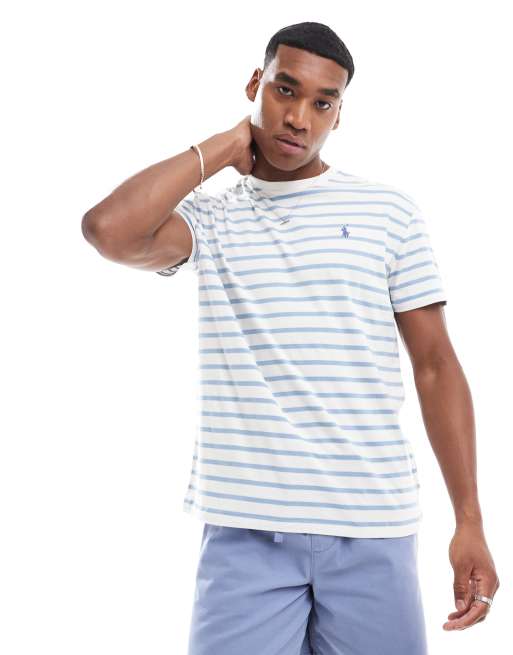 Polo Ralph Lauren – Ljusblå och vitrandig t-shirt med klassisk logga