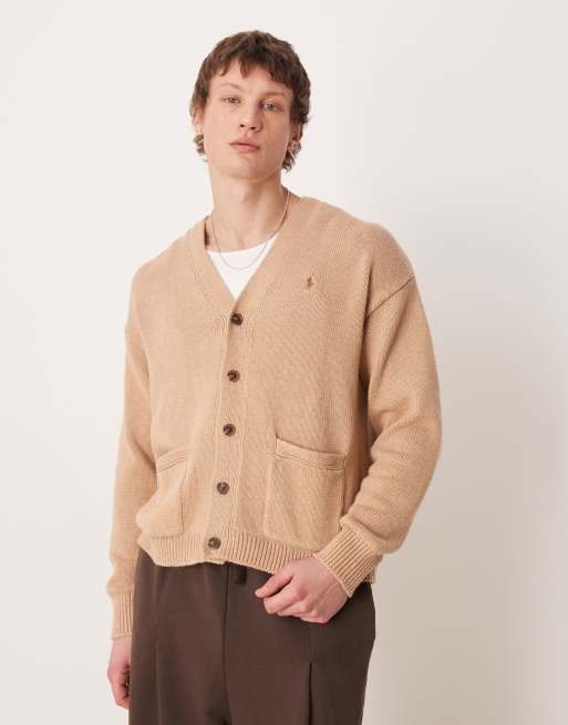 Polo Ralph Lauren – Ljusbrun, stickad kofta med ikonlogga