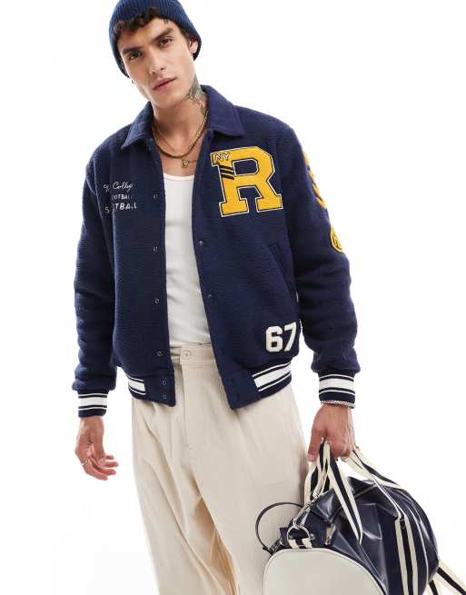 Polo Ralph Lauren – Marinblå baseball-jacka i teddy med märken