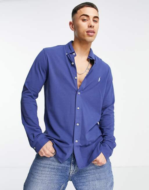 Polo Ralph Lauren – Marinblå smal pikétröja med ikonisk logga