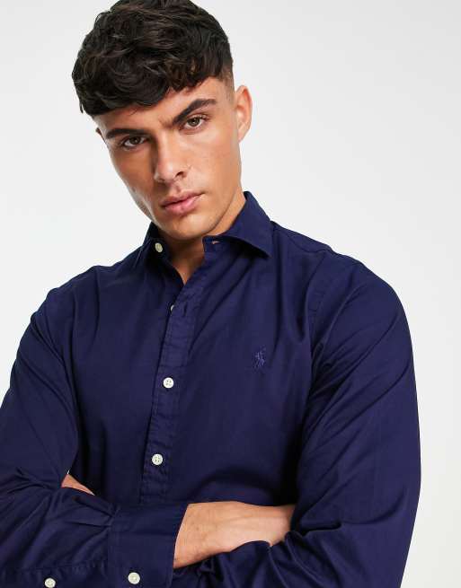 Polo Ralph Lauren – Marinblå, smal skjorta med ponnylogga
