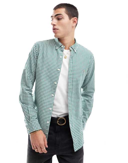 Polo Ralph Lauren – Mörkgrön och vit oxfordskjorta med ginghamrutigt mönster, smal passform och klassisk logga
