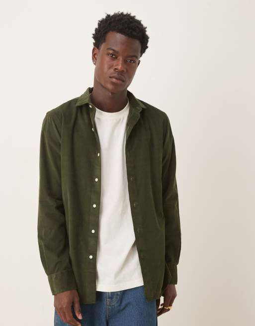 Polo Ralph Lauren – Olivgrön skjorta i smalrandig manchester med ikonlogga