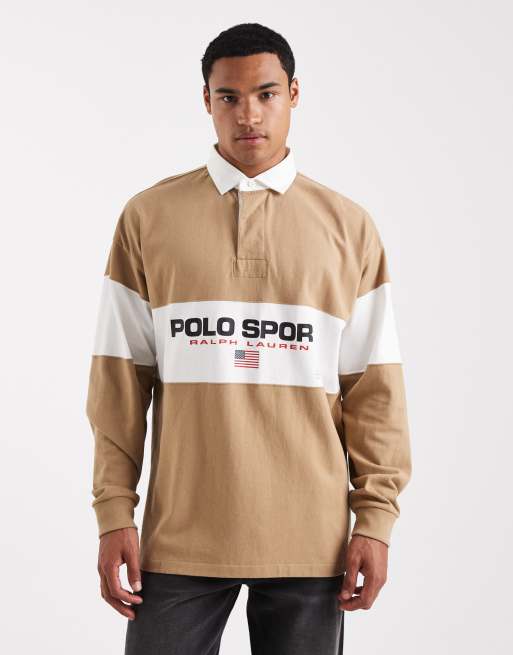 Polo Ralph Lauren – Sport – Kakifärgad rugbytröja i oversize med panel med flagglogga på bröstet