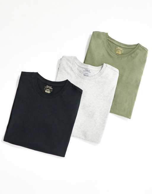 Polo Ralph Lauren – Svart, khakifärgad och grå t-shirt med logga, 3-pack