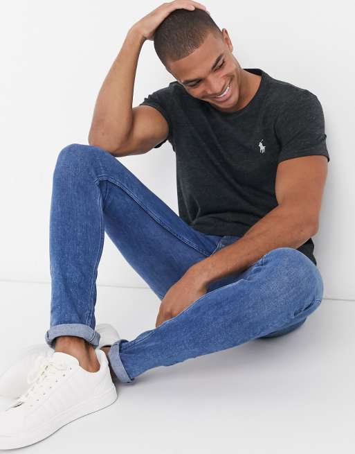 Polo Ralph Lauren - Svartmelerad t-shirt med spelarlogga