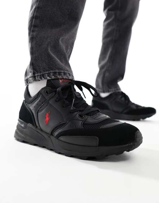 Polo Ralph Lauren – Trackster 200 – Svarta träningsskor med röd logga