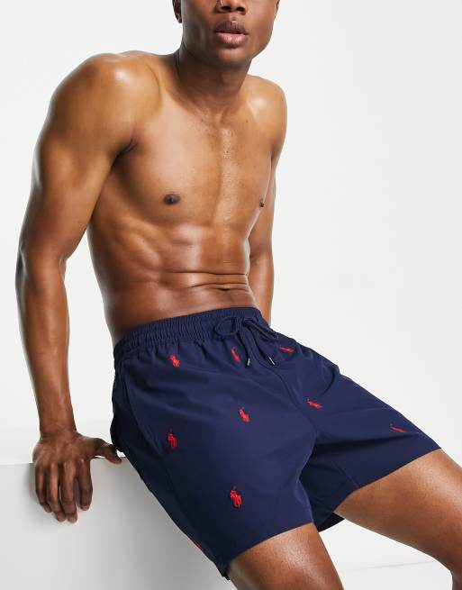 Polo Ralph Lauren – Traveler – Marinblå, loggmönstrade badshorts