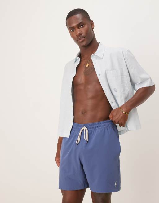 Polo Ralph Lauren – Traveler – Mellanblå badshorts med ikonlogga