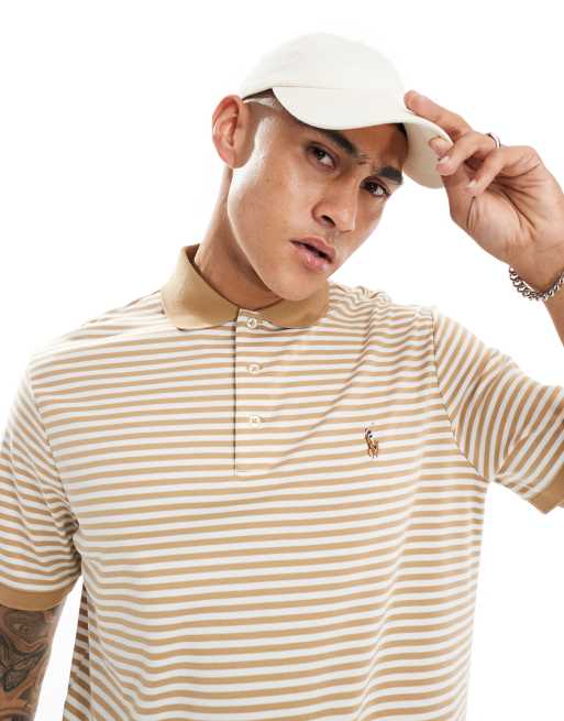 Polo Ralph Lauren – Vit, beigerandig, klassisk pikétröja i pimabomull och oversize med ikonlogga