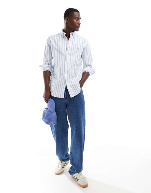 Polo Ralph Lauren – Vit- och blårandig oxfordskjorta med klassisk logga och anpassad passform