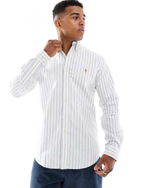 Polo Ralph Lauren – Vit- och blårandig oxfordskjorta med klassisk logga och anpassad passform