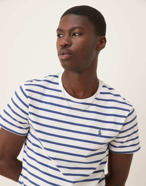 Polo Ralph Lauren – Vit och blårandig t-shirt med ikonlogga