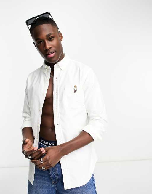 Polo Ralph Lauren – Vit oxfordskjorta med anpassad passform och björnlogga