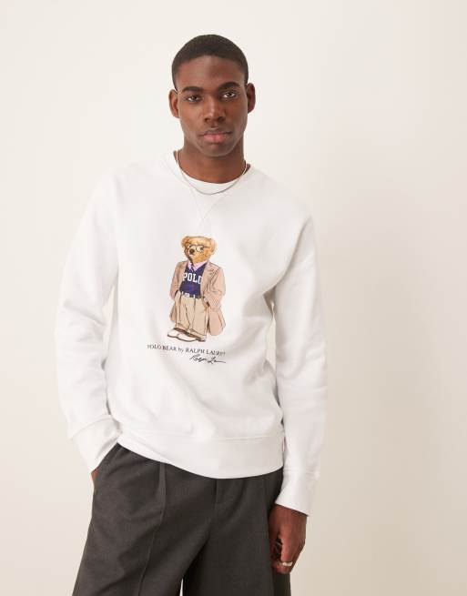 Polo Ralph Lauren – Vit sweatshirt med klassiskt tryck av nallebjörn