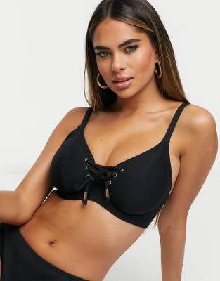 Pour Moi – Fylligare byst – Svart ribbad bikiniöverdel med repdetalj