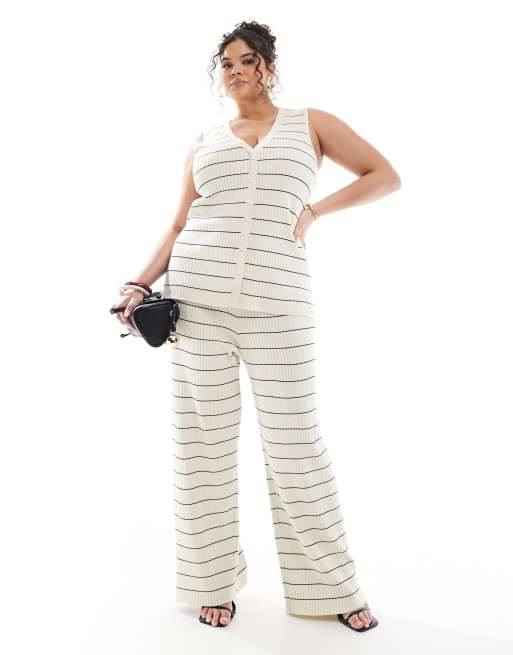 Pretty Lavish Curve – Gräddvita och svartrandiga, stickade byxor, del av set