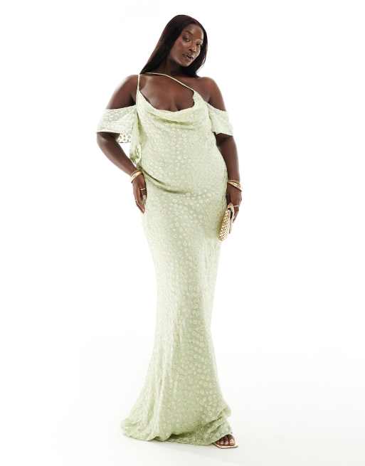 Pretty Lavish Curve – Grön och guldfärgad, metallisk maxiklänning med bara axlar