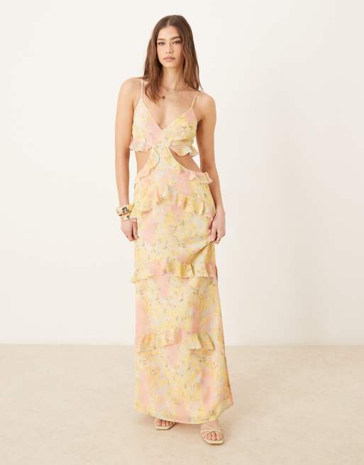 Pretty Lavish – Abstrakt, blommig maxiklänning med volang och utskurna detaljer