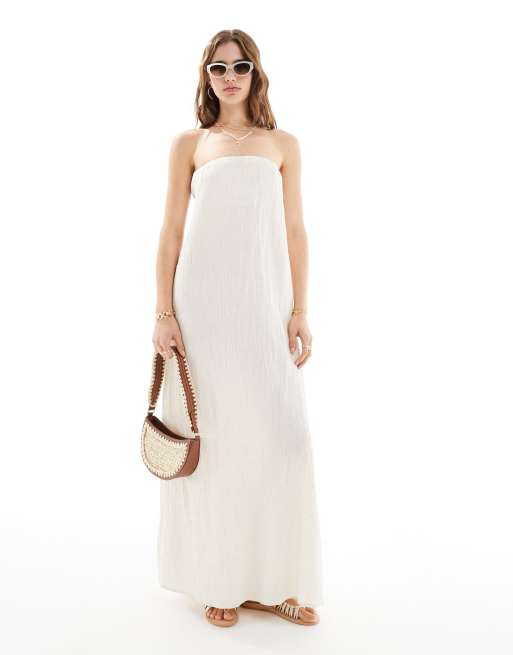Pretty Lavish – Beige midaxiklänning i linnemix och bandeaustil