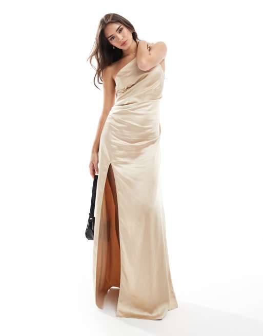 Pretty Lavish – Brudtärnor – Amelia – Guldfärgad, matt, enaxlad maxiklänning med rynkning i satin