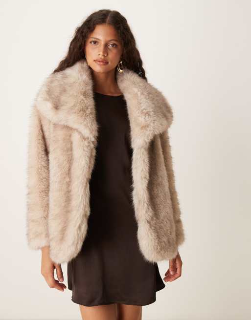 Pretty Lavish – Ljusbeige kappa i fuskpäls