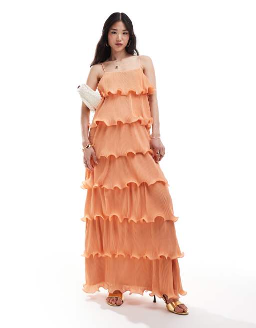 Pretty Lavish – Orange panelsydd maxiklänning med volang