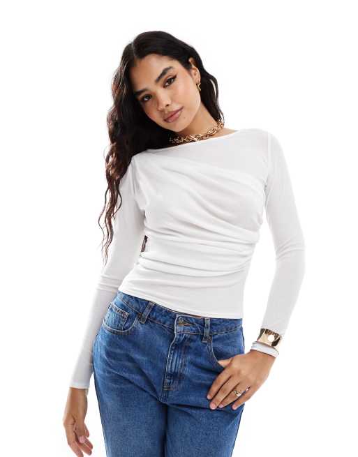 Pretty Lavish – Vit topp med indragen detalj i jersey