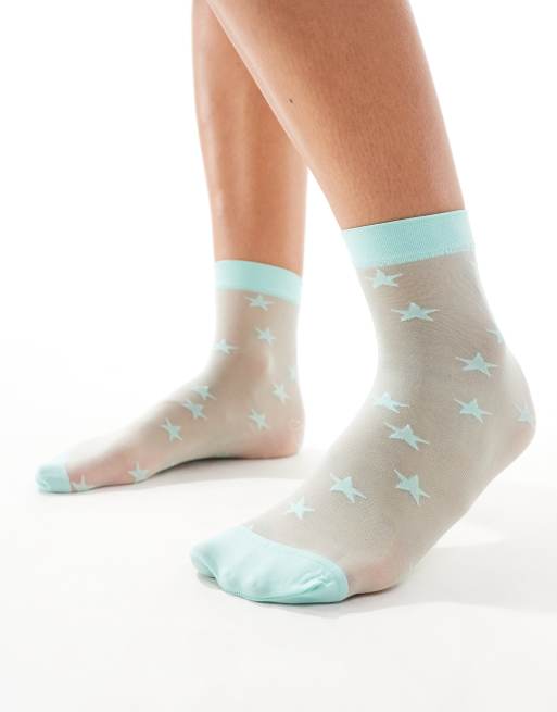 Pretty Polly – Mintgröna, skira strumpor med stjärnor