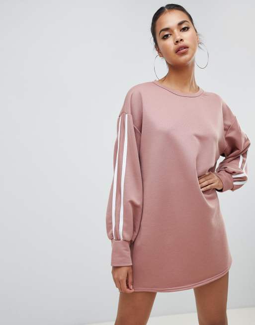 PrettyLittleThing – Rosa tröjklänning i oversize-modell med kontrastärmar