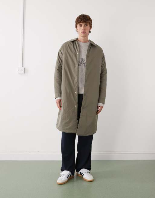 Prohibited – Kakigrön, mellanlång trenchcoat i rak passform