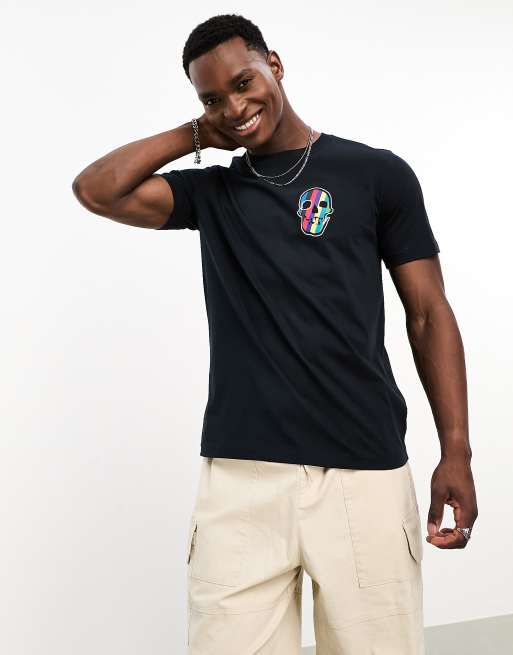 PS Paul Smith – Marinblå, randig t-shirt med dödskalletryck