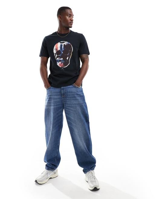 PS Paul Smith – Marinblå t-shirt med dödskalletryck
