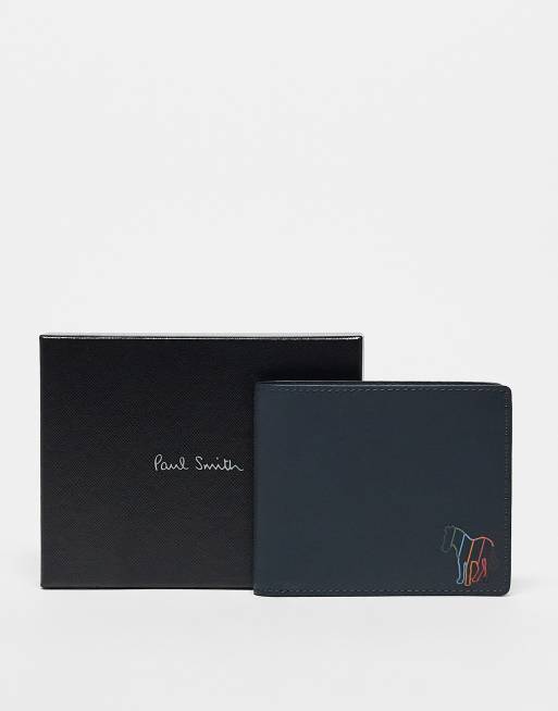 PS Paul Smith – Marinblå, vikbar plånbok i läder med flera loggor och zebratryck