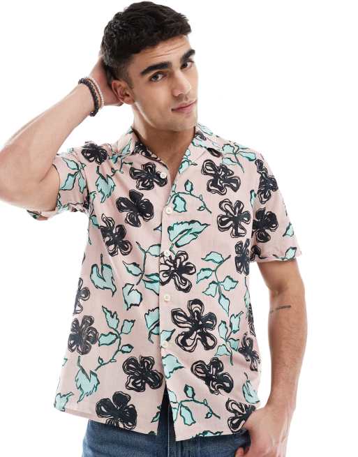 PS Paul Smith – Rosa, blommig basskjorta med kort ärm