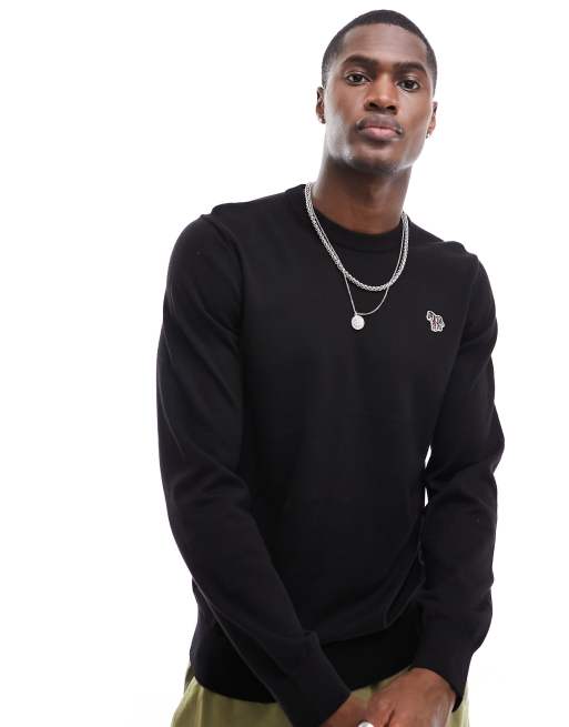 PS Paul Smith – Svart, stickad tröja i bomull med zebralogga