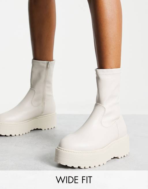 Public Desire Wide Fit – Pabla – Naturvita ankelboots med grov sula