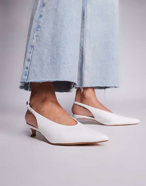 Public Desire Wide Fit – Saskia – Vita skor med taxklackar, hälrem och bred passform