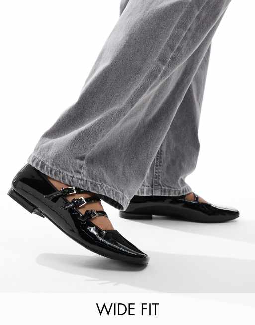 Public Desire Wide Fit – Sherry – Svartlackade, platta ballerinaskor i Mary Jane-stil med smala remmar