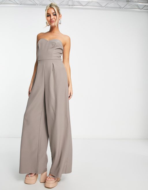 Public Desire – Brun jumpsuit med vida ben och bandeau-ringning