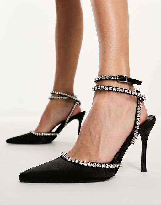 Public Desire – Exclusive – Frankiee – Svarta, utsmyckade klackskor