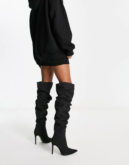 Public Desire – Lariza – Svarta, rynkade, lårhöga stövlar med stilettklackar