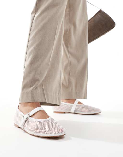Public Desire – Nelly – Vita ballerinaskor i mesh med spänne