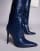 Public Desire – Nova – Marinblå knähöga boots med höga klackar och spetsig tå
