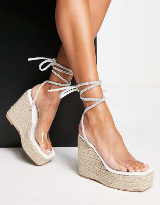 Public Desire – Sunbeam – Vita espadriller med kilklack, strass och knytning runt ankeln