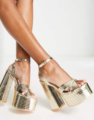 Public Desire – Zurra – Metalliskt guldfärgade platåskor med klack