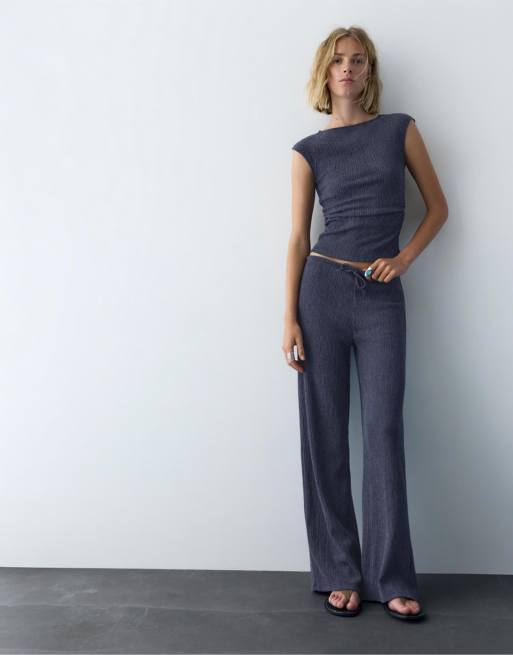 Marinblått set i crêpetyg