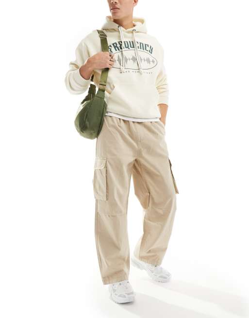 Pull&Bear – Beiga, fiskbensmönstrade cargobyxor