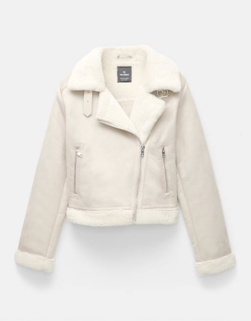 Pull&Bear – Beige, dubbelsidig jacka med kort design